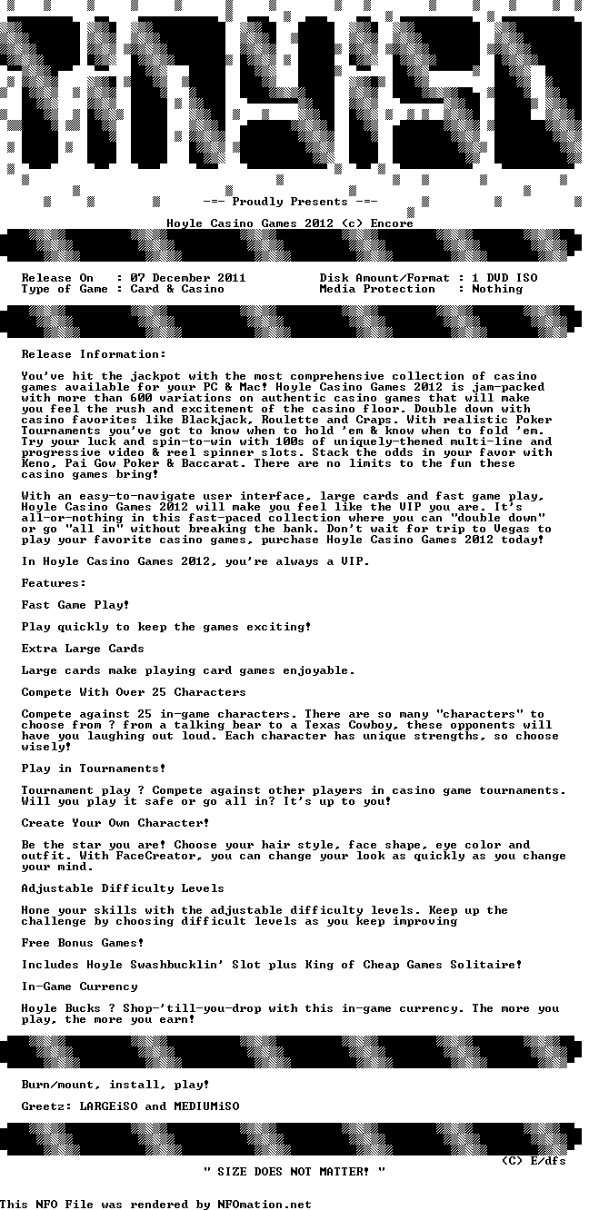 | Hoyle Casino Games 2012 Full indir download Oyun Hakkında Bilgi</I>: Çıkış Tarihi : Aralık 2011 Oyun Türü : Kart & Casino Nfo Nfo</I>: ![]() Sistem Gereksinimleri Sis. Bilgisi</I>: Sistem: Windows XP (Home & Pro) SP3 / Vista SP2 / 7 İşlemci: Pentium III 450 MHz (Vista ve 7 için 800 MHz) RAM: 128 MB (Vista ve 7 için 512 MB) HDD: 2 GB Crack : Mevcut Dil : İngilizce Dosya Türü : Sanal Sürücü (.iso) Açabilmeniz için önerdiğimiz program : Alcohol %120 veya Daemon Tools (Daemon Tools Lite programını indirmek ve resimli kurulumuna bakmak için TIKLAYIN!!!) Part Sayısı: 5 Boyut: 1.7 GB ![]() Turbobit Linkleri | Tamamlandı (400mb) Linkleri Açmak/Kapatmak İçin Tıklayın</I>: Kod: Turbobit.net | ??????????? ? ??????? ?????? ?????? Tıklanabilir Turbobit Linkleri http://turbobit.net/tva0toul5x6g/000...part1.rar.html http://turbobit.net/g8p6sa2f244y/000...part2.rar.html http://turbobit.net/ows40naq67eo/000...part3.rar.html http://turbobit.net/mkj0dfgkgno4/000...part4.rar.html http://turbobit.net/x8teax8dakq3/000...part5.rar.html |